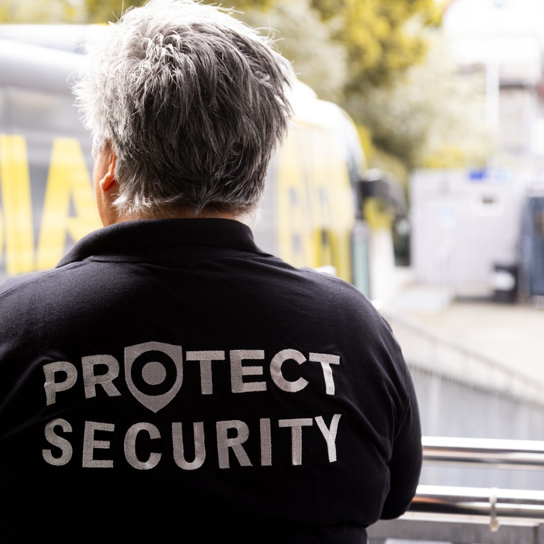 Ja, Du bekommst die passende Arbeitskleidung für Deinen Einsatz gestellt – z. B. ein Protect-Shirt, Weste oder Jacke.